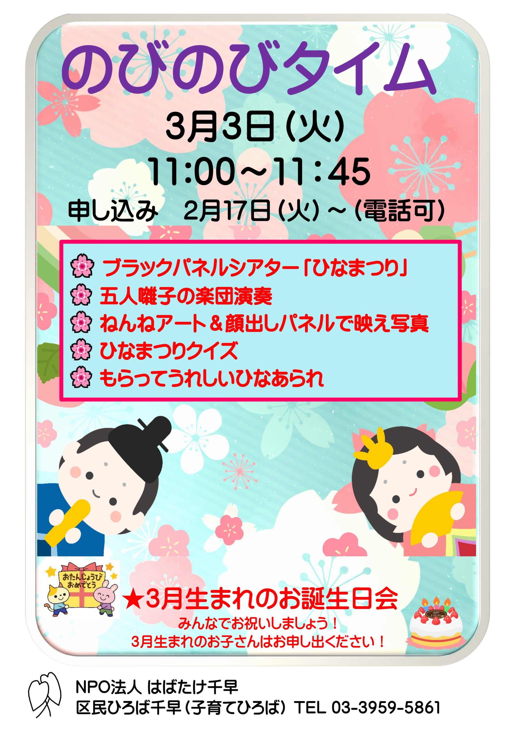 赤ちゃんから未就学児迄、誕生月のお子さんだけでなく参加出来ます。