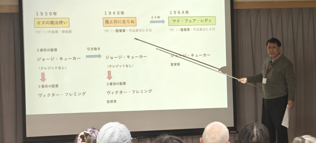 解説者は、映画や監督、代表的な楽曲を取り上げつつ、作品にまつわるうんちくや裏話を交えて紹介。